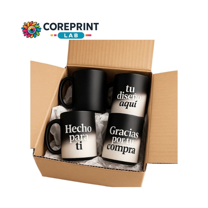 Una taza con efecto sorpresa: cambia de color con el calor y revela tu diseño personalizado. ¡Ideal para quienes aman lo diferente en un formato más grande!